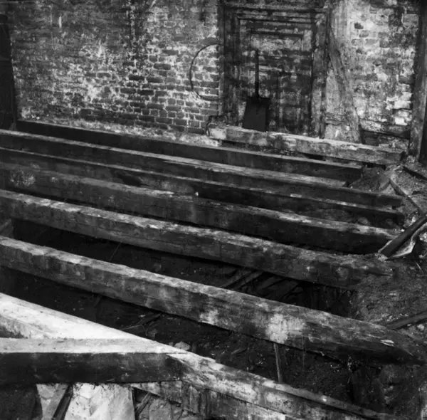 Fra rivingen av Holmens gate 5 i Oslo i Pipervika.Hele denne gata forsvant med Rådhusreguleringen. Bakgården i Holmens gate 5 er bevart på Norsk Folkemuseum, som bygning nr. 231.