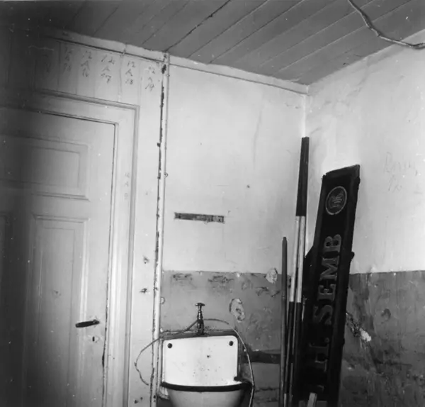 Fra rivingen av Holmens gate 5 i Oslo i Pipervika.Hele denne gata forsvant med Rådhusreguleringen.Bakgården i Holmens gate 5 er bevart på Norsk Folkemuseum, som bygning nr. 231.