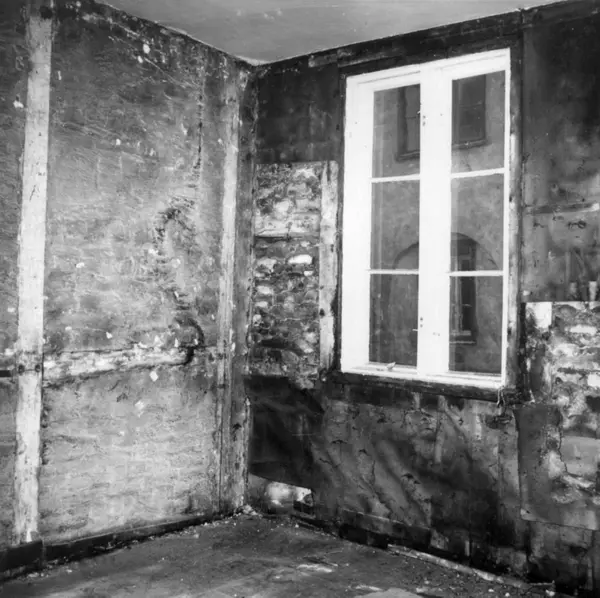 Fra rivingen av Holmens gate 5 i Oslo i Pipervika.Hele denne gata forsvant med Rådhusreguleringen.Bakgården i Holmens gate 5 er bevart på Norsk Folkemuseum, som bygning nr. 231.