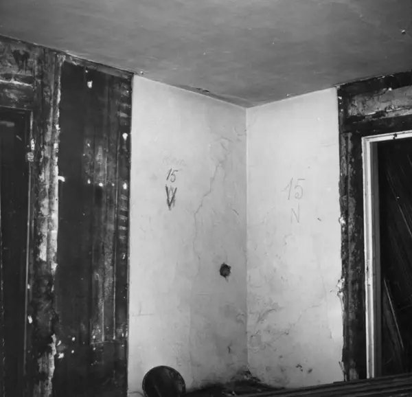 Fra rivingen av Holmens gate 5 i Oslo i Pipervika.Hele denne gata forsvant med Rådhusreguleringen.Bakgården i Holmens gate 5 er bevart på Norsk Folkemuseum, som bygning nr. 231.