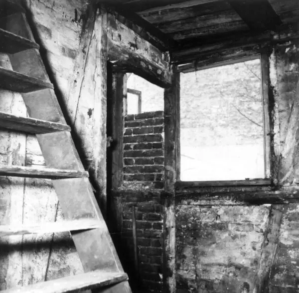 Fra rivingen av Holmens gate 5 i Oslo i Pipervika.Hele denne gata forsvant med Rådhusreguleringen.Bakgården i Holmens gate 5 er bevart på Norsk Folkemuseum, som bygning nr. 231.