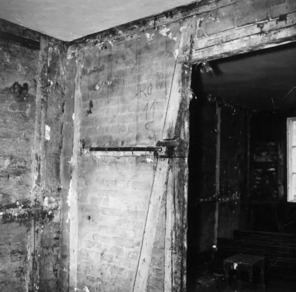 Fra rivingen av Holmens gate 5 i Oslo i Pipervika.Hele denne gata forsvant med Rådhusreguleringen.Bakgården i Holmens gate 5 er bevart på Norsk Folkemuseum, som bygning nr. 231.