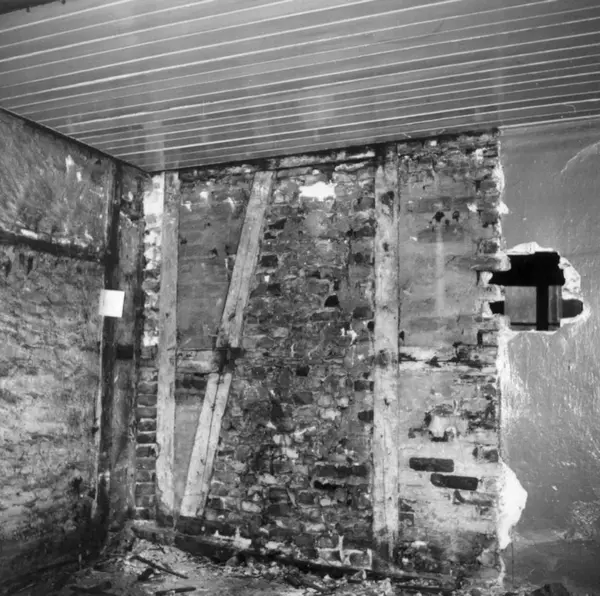 Fra rivingen av Holmens gate 5 i Oslo i Pipervika.Hele denne gata forsvant med Rådhusreguleringen.Bakgården i Holmens gate 5 er bevart på Norsk Folkemuseum, som bygning nr. 231.