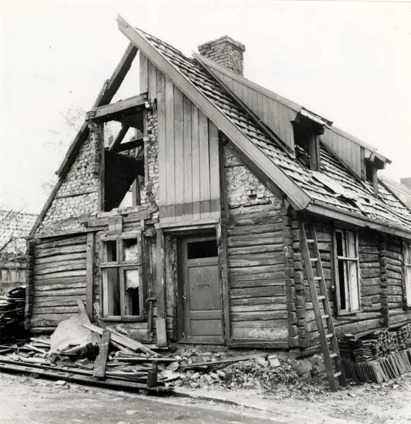 Hjørnet Langleiken og Johannesgata, Enerhaugen, Oslo 1959. Hus under riving.
