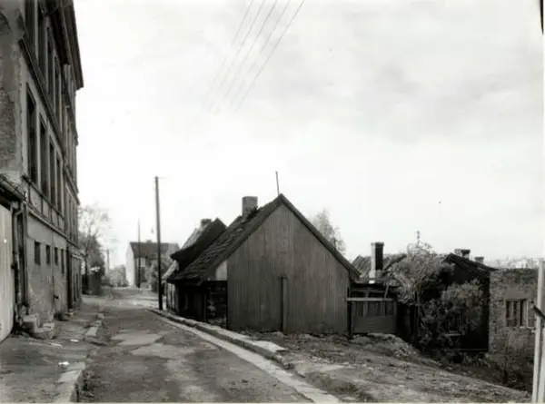 Stupinngata 10, Enerhaugen, Oslo 1959. Gatebilde med lite trehus.