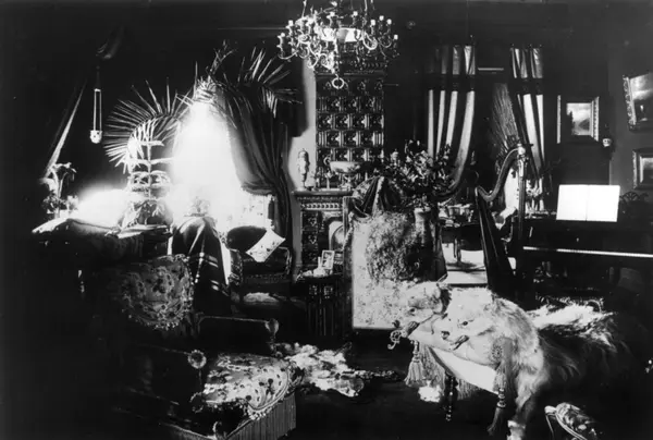 Drammensveien 53 II, Oslo, interiør, 1890-årene. Bolig for verkseier Kristofer Berg f. 1858 og hustru Sophie Dybwad f. 1861.