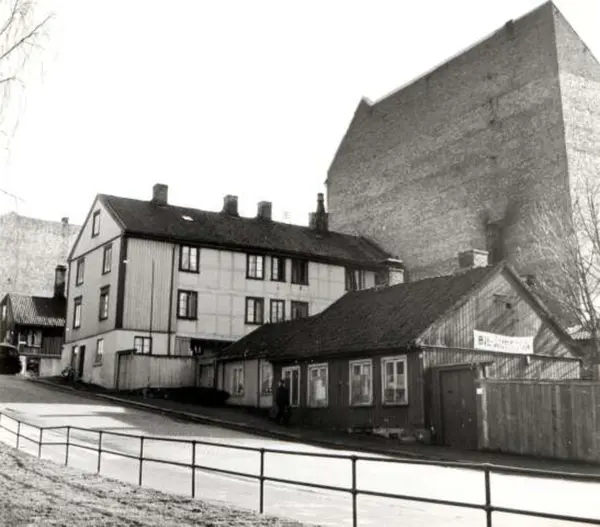 Nordre gate 1, 3 og 5, Grünerløkka, Oslo 1961. Husene sett fra gata.