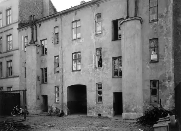 Toftes gate 57, Grünerløkka, Oslo 1961. Gårdsrommet, mellombygningen.