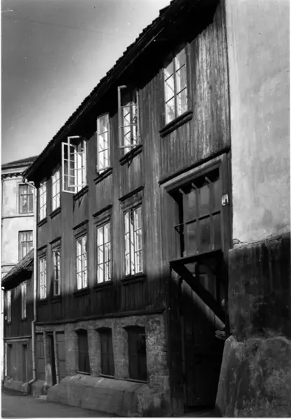 Øvregata 2b, Grünerløkka, Oslo 1961. Trehus sett fra gata.