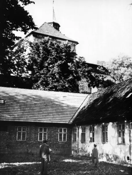Oslo, Akershus Festning. Mann og kvinne i gårdsrom på festningen.