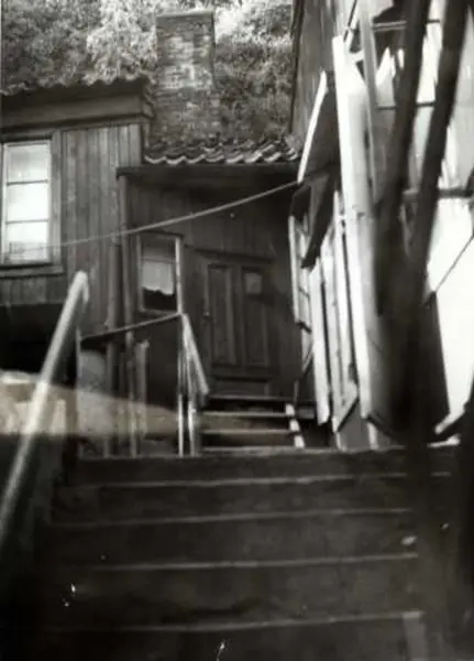 Fredensborg, Oslo ca. 1950. Trehusbebyggelse, bolig, inngangsparti og.trapper.