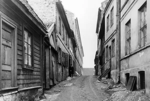 Vimkelgaten, Oslo. Smal gate med boliger på hver side, en av dem er Vinkelgaten 11.
