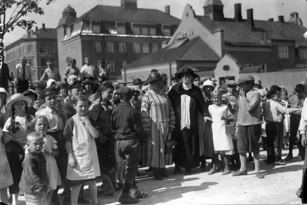 Inga Bjørnson på utflukt med barn fra Oslo.