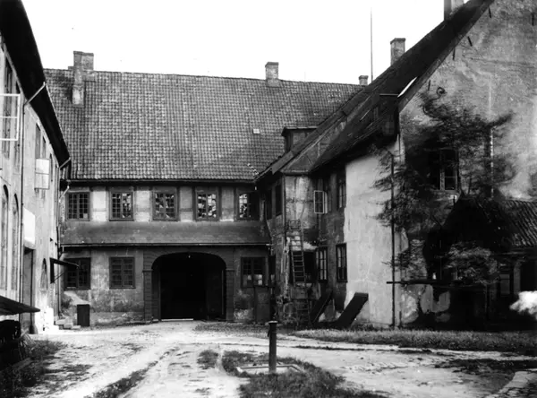 Dronningens gate 15, Oslo. Gårdsrom med vannpost. Stortingssalens vinduer til venstre.