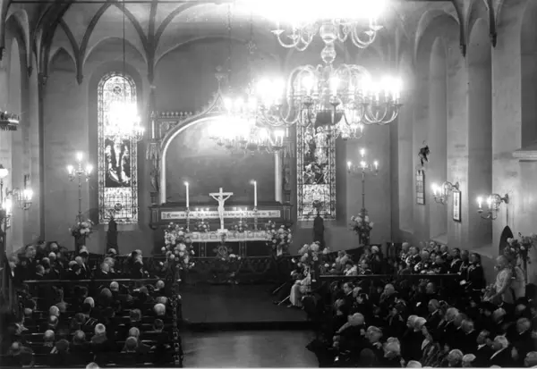 Håkon VII's 25. års jubileum, Oslo. 1930. Gudstjeneste i Vår Frelsers kirke (nå Oslo domkirke). Fullsatt kirke.