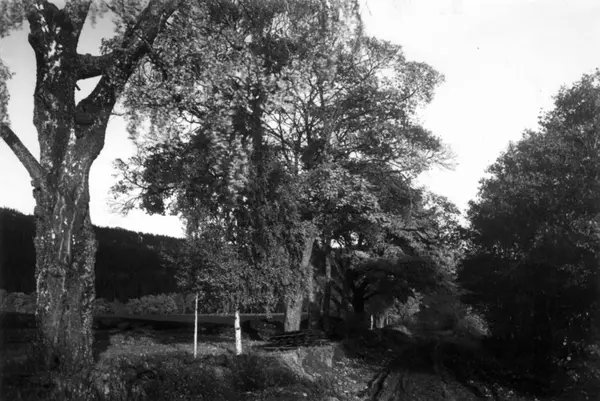 Fra Bogstad ca. 1923. Parken med vei. Skog i bakgrunnen.