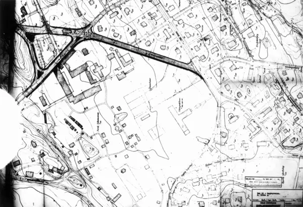 Bygdøy, Oslo 1965. Planlagt vei forbi NF. Kart.