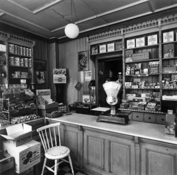 Johan N. Nordlies kolonialforretning, Vibes gate 13 i Oslo. Fotografert 1968. Butikken ble innredet i ca. 1900, kjøpt av Nordlie i 1921 og solgt til Johan Skarpholt i 1968. Det meste av inventaret ble kjøpt av Norsk Folkemuseum i 1968.