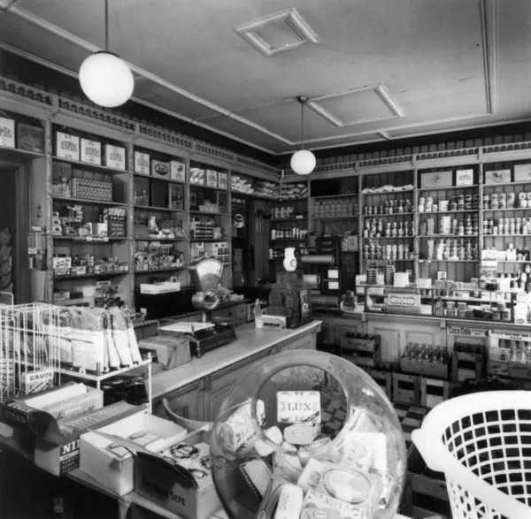 Johan N. Nordlies kolonialforretning, Vibes gate 13 i Oslo. Fotografert 1968. Butikken ble innredet i ca. 1900, kjøpt av Nordlie i 1921 og solgt til Johan Skarpholt i 1968. Det meste av inventaret ble kjøpt av Norsk Folkemuseum i 1968.