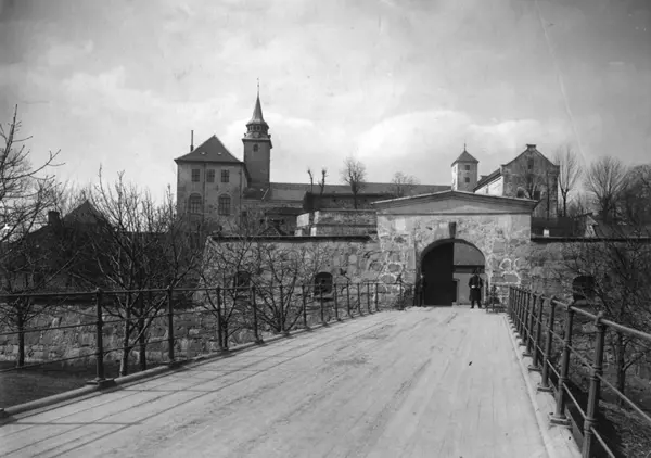 Akershus festning, Oslo.. Bru, gardist og port på festningen.