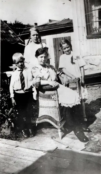 Stupinngata 10, Enerhaugen, Oslo. Martha Olsen og hennes barn på gårdplassen