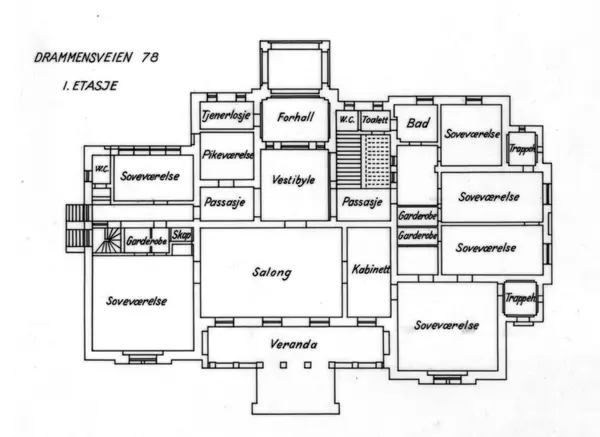 Videnskapsakademiet. Drammensveien 78, Oslo. Kopi av bearbeidet tegning av 1.etasje. 1885. Arkitekt Herman Major Backer.