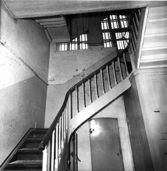 Oslo kretsfengsel, Møllergata 19, oppført 1866, fot. 1975. Trapp opp til 2. etasje.