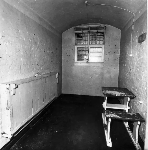 Oslo kretsfengsel, Møllergata 19, oppført 1866, fot. 1975. Interiør i celle sett mot vinduet.