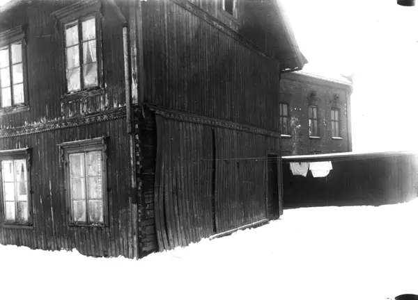 Bolighus, trebygning uten grunnmur, ant. Dynekilgata (20), Rosenhoff, Oslo. Jfr. NF.13400-065. Fra boliginspektør Nanna Brochs boligundersøkelser i Oslo 1920-årene.