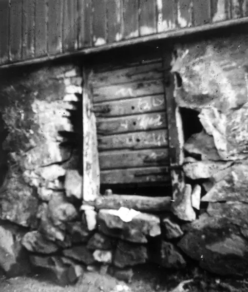 Parti fra yttervegg, bolig? Luke (?) i grunnmur. Fra boliginspektør Nanna Brochs boligundersøkelser i Oslo 1920-årene.