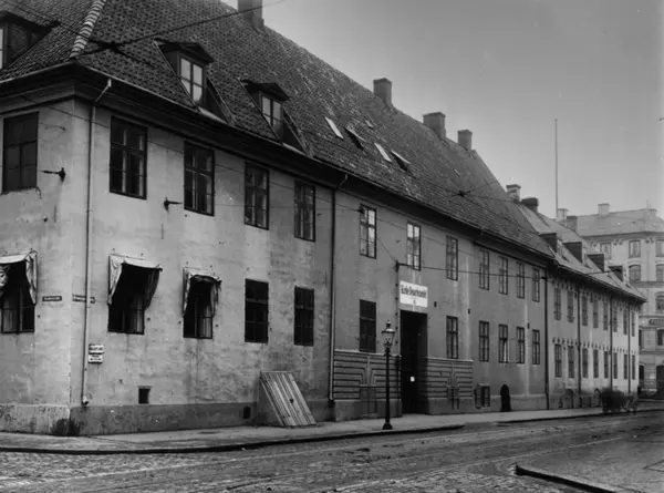Katedralsskolen, Oslo, Dronningens gate 15. Oppført 1801-2, revet 1917. Med Stortingsalen og Kirkedepartementet.