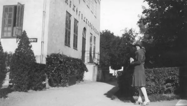 Assistent Gudrun Gulliksen, ansatt på Norsk Folkemuseum, på vei til kontoret i 1929.