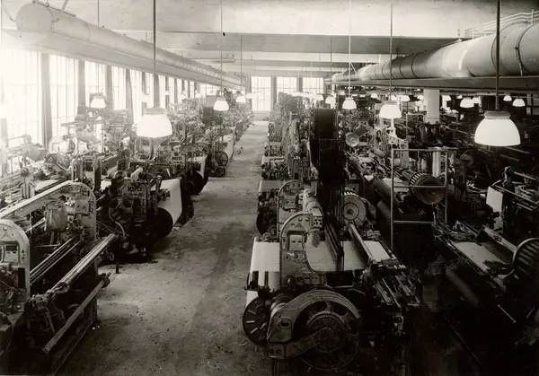 Produksjonslokale ved A/S Joh. Petersens Linvarefabrik. Veveriet.