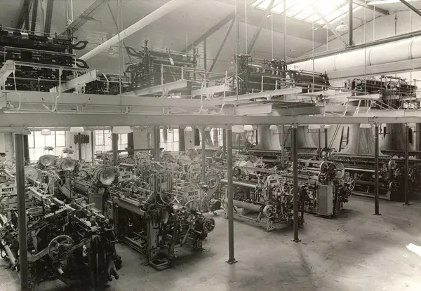 Produksjonslokale ved A/S Joh. Petersens Linvarefabrik. Veveriet.