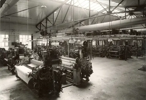 Produksjonslokale ved A/S Joh. Petersens Linvarefabrik. Veveriet.