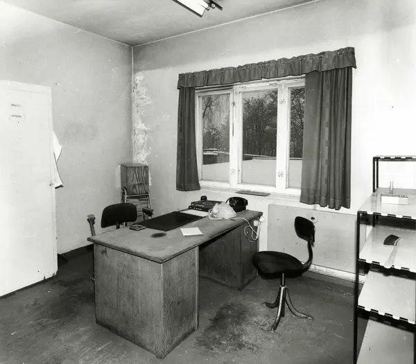 Fotografiene kom inn til museet med annet gjenstandsmateriale fra Fortex fabrikken, ved dennes nedleggelse i 1976. Christiania Seilduksfabrik, grunnlagt 1856, fusjonerte i 1960 med A/S Joh. Petersen Linvarefabrik, grunnlagt 1854, til Fortex A/S. Norges siste damaskveveri. Bilder tatt forbindelse med nedleggelsen av Fortex A/S i 1976. Notert på bildet: Her var også et kontor for garnmannen og et kontor for en dame som kontrolerte styrken på garnet og vaskeektheten, hun hadde også et apparat som kontrollerte garnnummeret. Her var også esker med garnprøver.