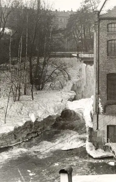 Fortex A/S. Akerselva, fossen med is ved Seilduksfabrikken.