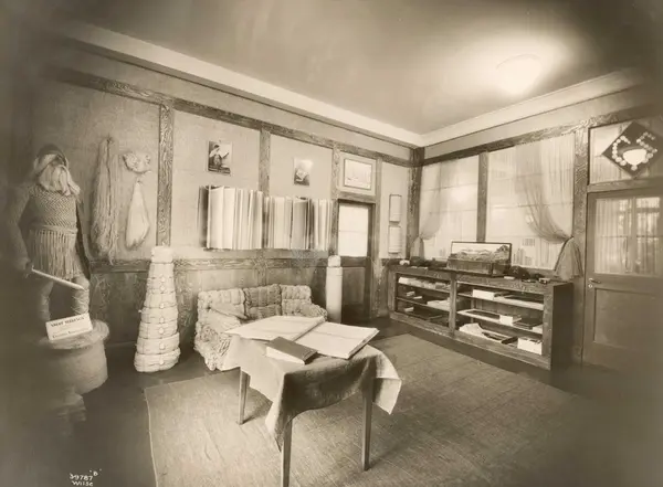 Fotografiene kom inn til museet med annet gjenstandsmateriale fra Fortex fabrikken, ved dennes nedleggelse i 1976. Christiania Seilduksfabrik, grunnlagt 1856, fusjonerte i 1960 med A/S Joh. Petersen Linvarefabrik, grunnlagt 1854, til Fortex A/S. Norges siste damaskveveri. Reklamefoto fra Seilduksfabrikken.