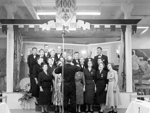 Christiania Seildugsfabriks jubileumsmiddag. Bedriftens kor og dirigent Paul Lie.