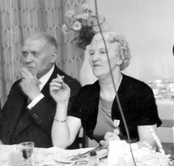Christiania Seildugsfabriks jubileumsmiddag. Anna Nilsen og Halvorsen ved bordet.
