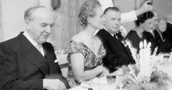 Christiania Seildugsfabriks jubileumsmiddag. Mennesker sitter til bords.