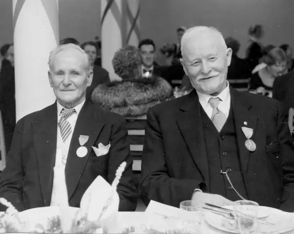 Christiania Seildugsfabriks jubileumsmiddag. To pensjonister, Anthony Ruban.og Andreas Sjølie.