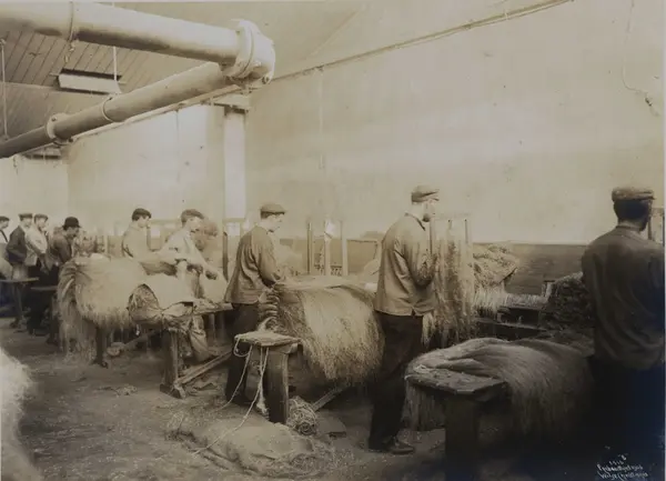 Fortex A/S. Christiania Seildugsfabrik, Oslo. Menn arbeider med fiber.