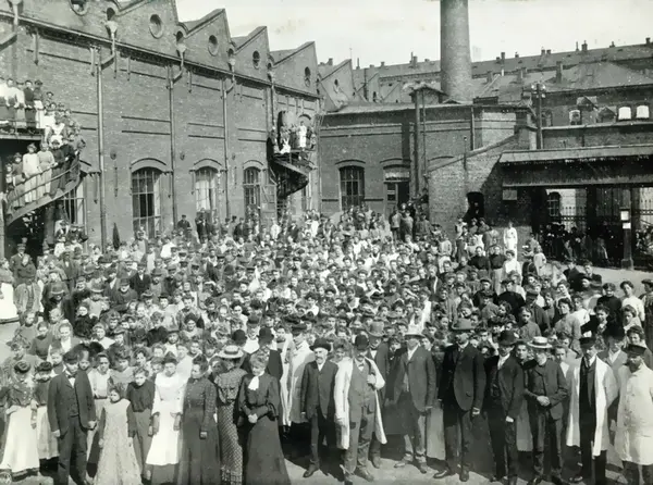 Personalalbum fra Christiania Seildugsfabrik, påbegynt i 1956. Arbeidere, funksjonærer og styre ved 50 års jubileet 1906. På gårdsplassen.