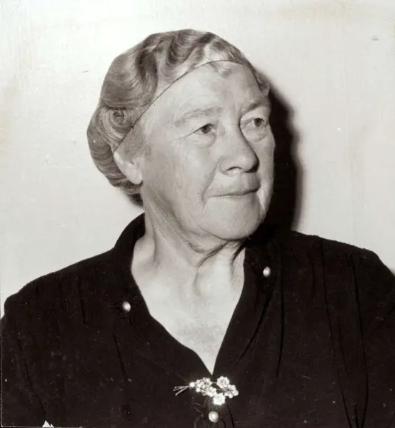 Personalalbum fra Christiania Seildugsfabrik, påbegynt i 1956. Portrett av Marie Olsen, karderiet. Født 07.10.1882. Ansatt 1913. Pensj. 1950.