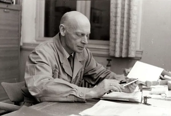 Personalalbum fra Christiania Seildugsfabrik, påbegynt i 1956. Portrett av økonom Ivar Borgersen. Født 18.09.1902. Ansatt 15.04.1925. 32 års tjeneste 1957. Økonom fra 1940.