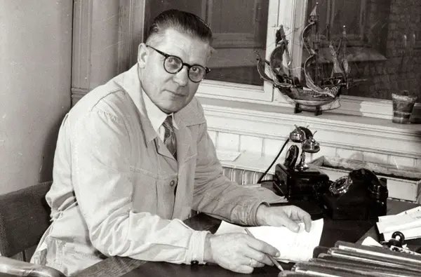 Personalalbum fra Christiania Seildugsfabrik, påbegynt i 1956. Portrett av lagersjef Ruben Johansen. Født 23.03.1904. Ansatt 02.06.1927. 30 års tjeneste i 1957. Salgssjef fra 01.09.1948.