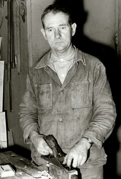 Personalalbum fra Christiania Seildugsfabrik, påbegynt i 1956. Portrett av snekker Leif Johansen. Født 05.10.1912. Ansatt 28.11.1932. 27 års tjeneste.