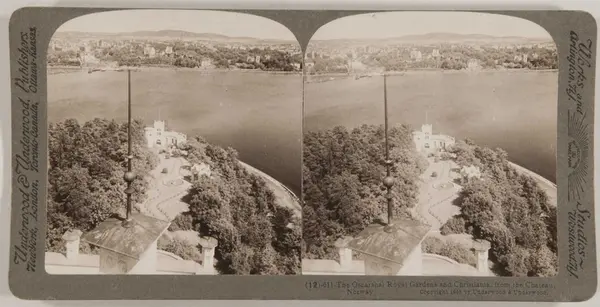 Stereoskopi. Utsikt fra Oscarshall på Bygdøy mot Oslo sentrum.