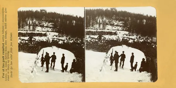 Stereoskopi. Hopprenn i Holmenkollen, Oslo.